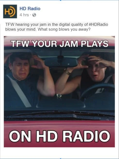 In this campaign, we use the “That Feeling When” meme to capture the high quality experience of listening to HD Radio.