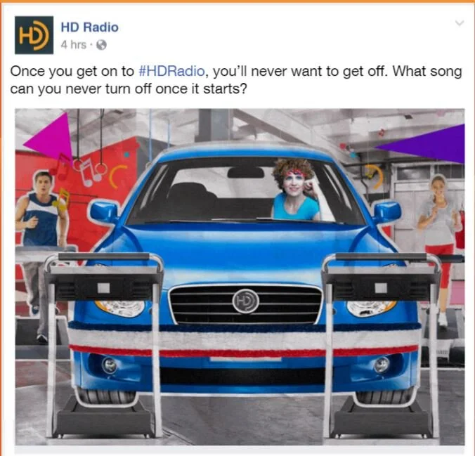 One of my clients was DTS, a company that makes multichannel audio technologies for film and video. At some point, they bought a company called HD Radio (which isn’t even Hi Definition radio, “HD” is just the name). It’s basically just the radio that comes standard in most new cars. Anyway, they wanted us to make some Twitter and Facebook content to help explore their social identity.