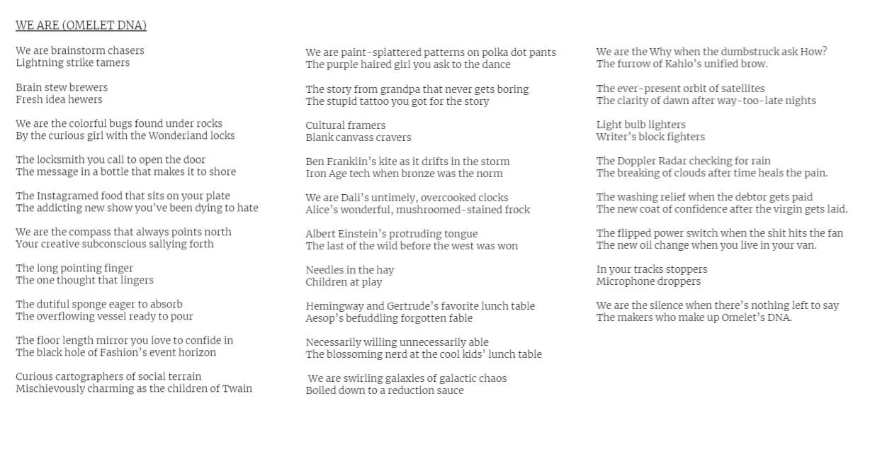 There was an internal project where they asked me to write a manifesto for the in-house “Maker” department. Then the Art Directors chose a line and illustrated it. We turned that into a fun holiday gift for our clients. It was a little thing, but I’m proud of it.